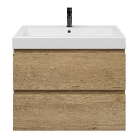 | | Bellanti Gisella/Esta-Q badmeubel 80x46 2 softclose laden warm eiken greeploos wastafel mat wit met 1 kraangat |