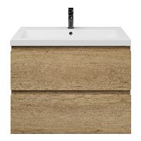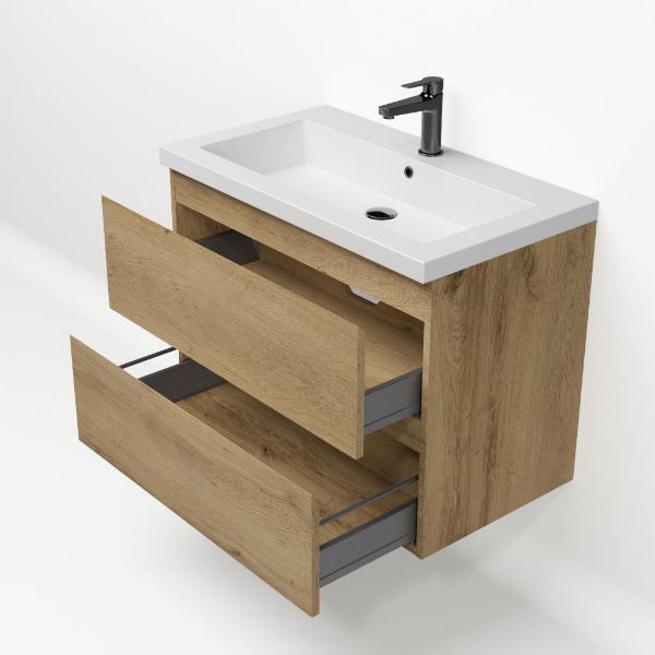 | | Bellanti Gisella/Esta-Q badmeubel 80x46 2 softclose laden warm eiken greeploos quartz wastafel mat wit met 1 kraangat |