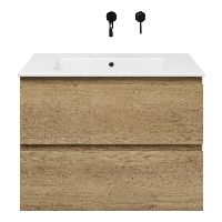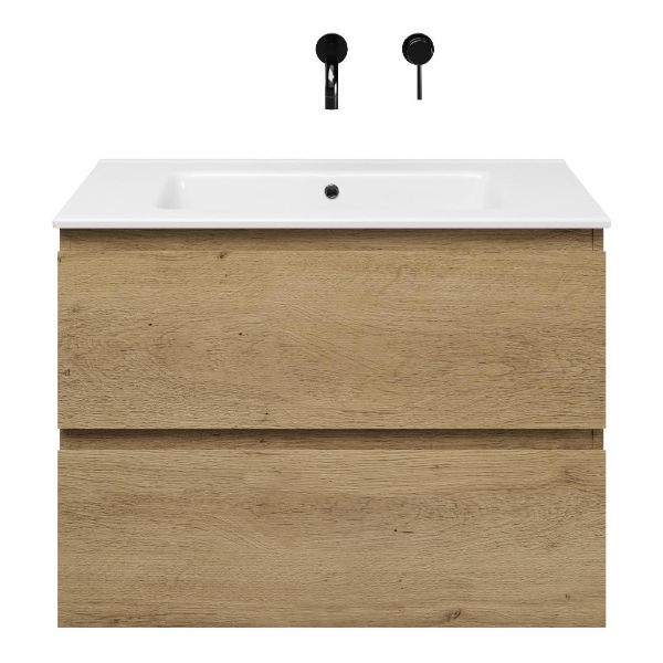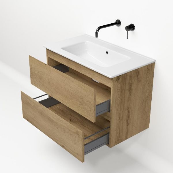 | | Bellanti Gisella/Etna badmeubel 80x46 2 softclose laden warm eiken greeploos keramische wastafel wit zonder kraangaten |