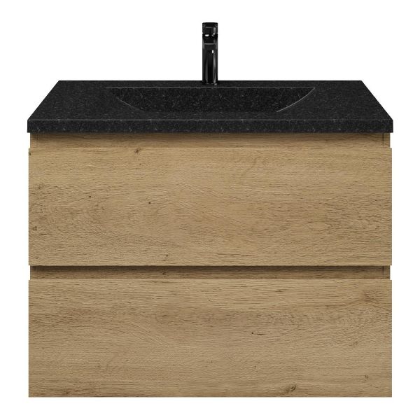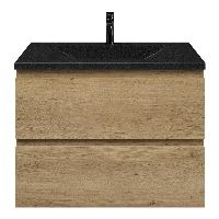 | Bellanti Gisella/Faro Stone badmeubel 80x46 2 softclose laden warm eiken greeploos natuursteen wastafel blue stone met 1 kraangat |