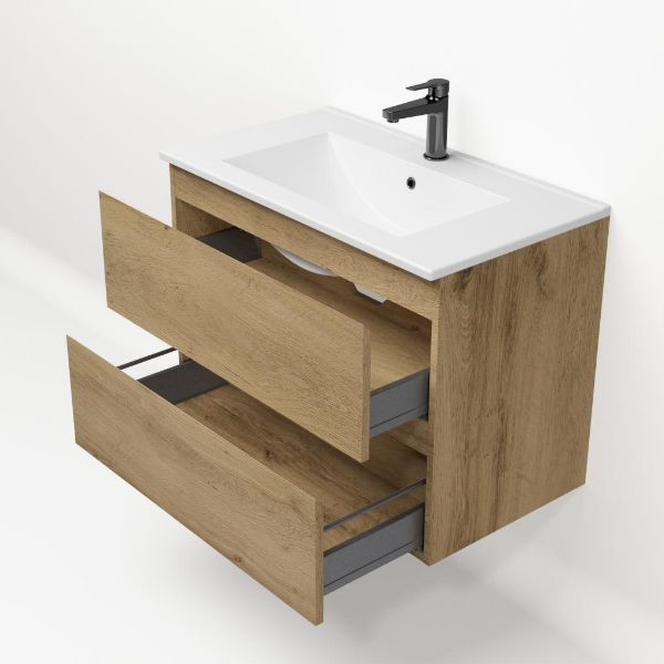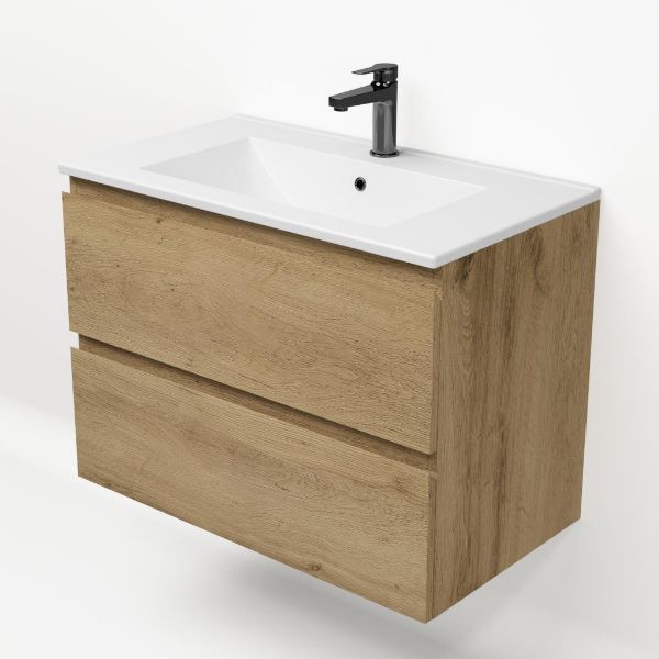 | Bellanti Gisella/Faro badmeubel 80x46 2 softclose laden warm eiken greeploos keramische wastafel wit met 1 kraangat |