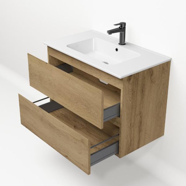 | Bellanti Gisella/Quadra badmeubel 80x46 2 softclose laden warm eiken greeploos keramische wastafel wit met 1 kraangat |
