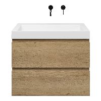 | | Bellanti Gisella/Renzo badmeubel 80x46 2 softclose laden warm eiken greeploos polystone wastafel wit zonder kraangaten |