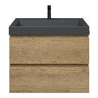 | Bellanti Gisella/Renzo-q badmeubel 80x46 2 softclose laden warm eiken greeploos quartz wastafel mat grijs met 1 kraangat |