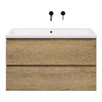 | | Bellanti Gisella/Amelia badmeubel 100x46 2 softclose laden warm eiken greeploos keramische wastafel wit glans zonder kraangaten |