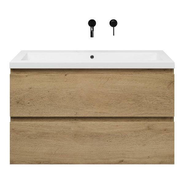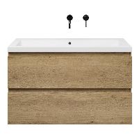 | | Bellanti Gisella/Esta badmeubel 100x46 2 softclose laden warm eiken greeploos polystone wastafel wit zonder kraangaten |