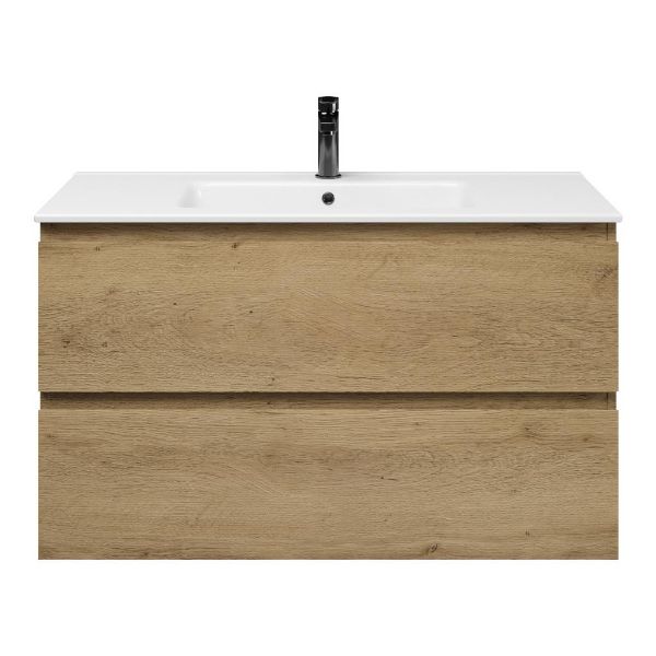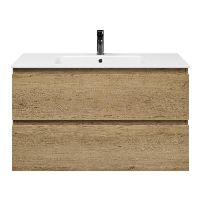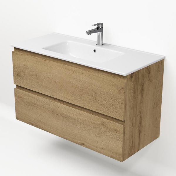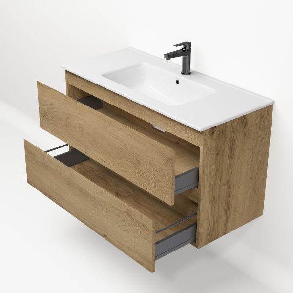 | | Bellanti Gisella/Etna badmeubel 100x46 2 softclose laden warm eiken greeploos keramische wastafel wit met 1 kraangat |