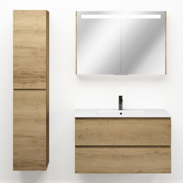 | Bellanti Gisella/Etna badmeubel 100x46 2 softclose laden warm eiken greeploos keramische wastafel wit met 1 kraangat |