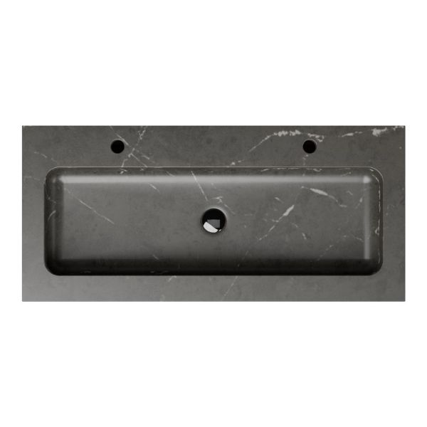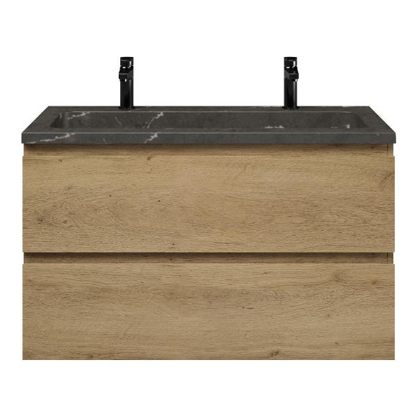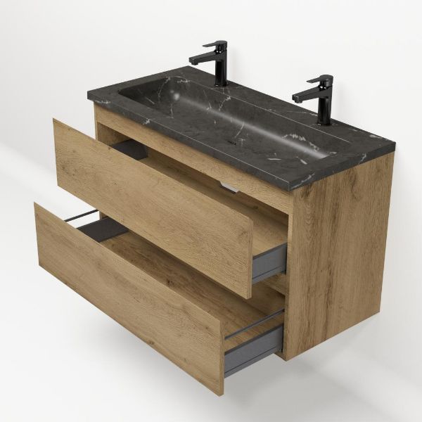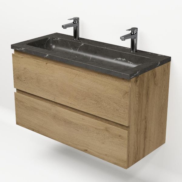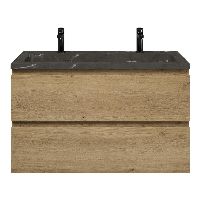 | | Bellanti Gisella/Square badmeubel 100x46 2 softclose laden warm eiken greeploos natuursteen wastafel blue stone met 2 kraangaten |
