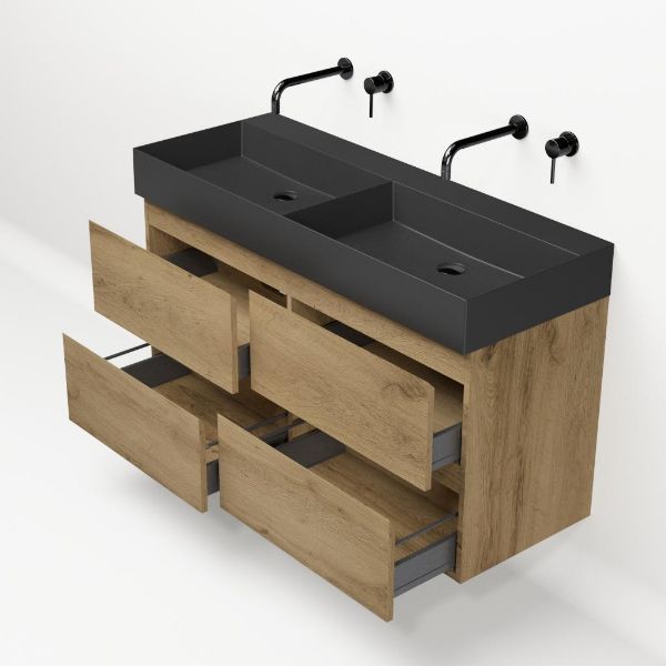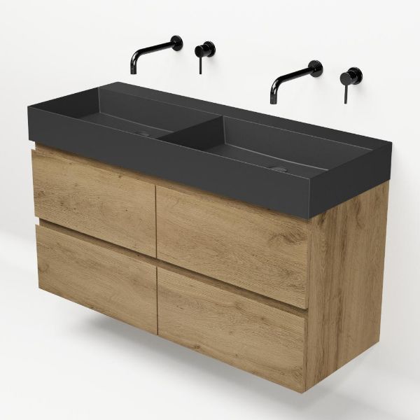 | Bellanti Gisella/Azzurra badmeubel 120x46 4 softclose laden warm eiken greeploos keramische wastafel dubbel antraciet mat zonder kraangaten |