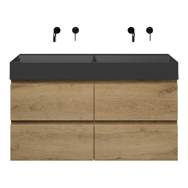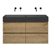 | | Bellanti Gisella/Azzurra badmeubel 120x46 4 softclose laden warm eiken greeploos keramische wastafel dubbel antraciet mat zonder kraangaten |