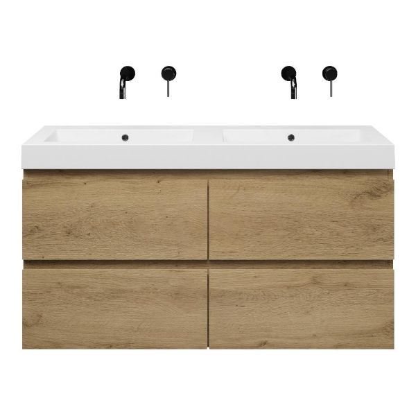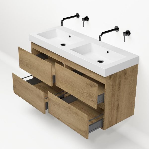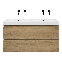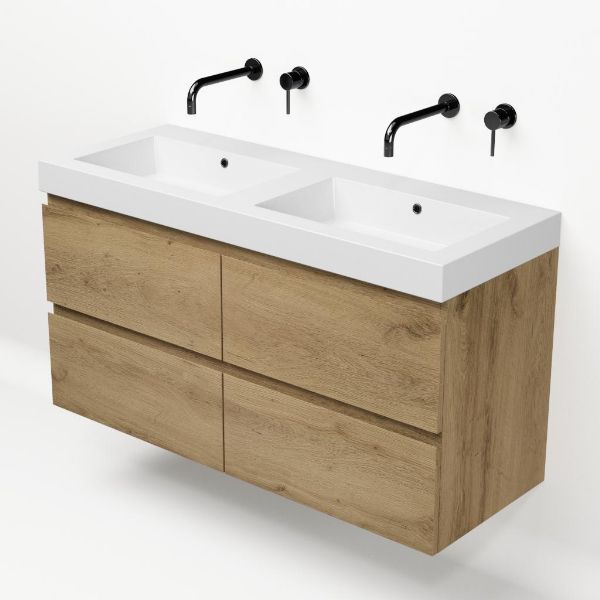 | | Bellanti Gisella/Esta badmeubel 120x46 4 softclose laden warm eiken greeploos polystone wastafel dubbel wit zonder kraangaten |