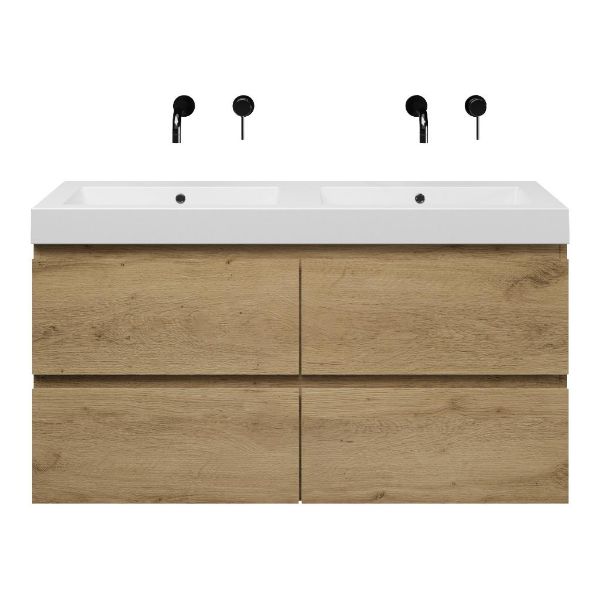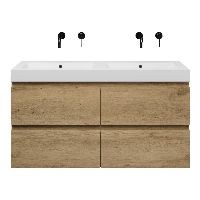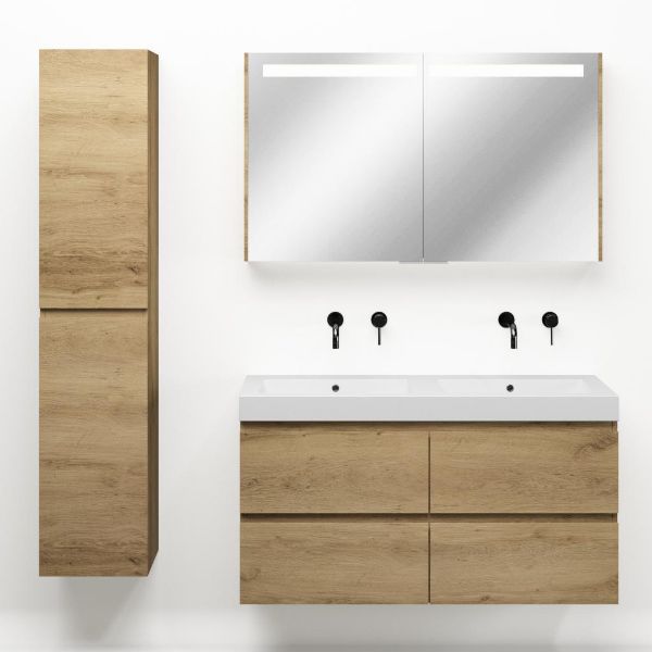 | | Bellanti Gisella/Esta-Q badmeubel 120x46 4 softclose laden warm eiken greeploos quartz wastafel dubbel mat wit zonder kraangaten |