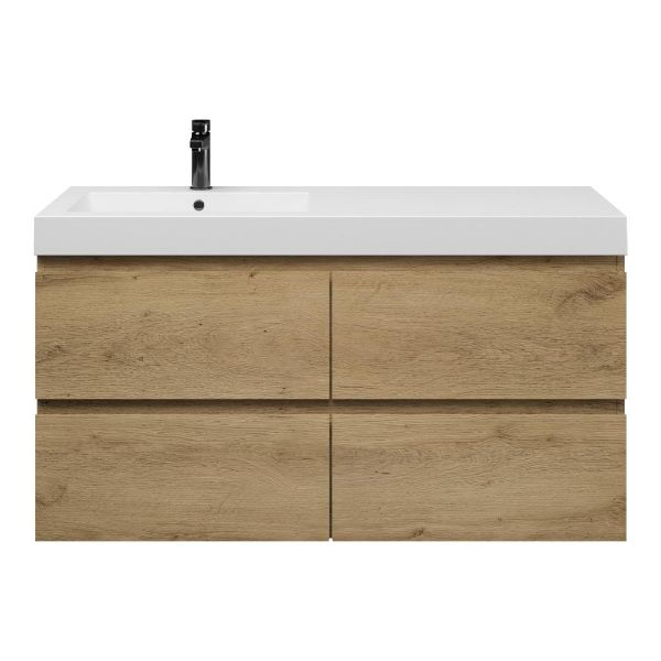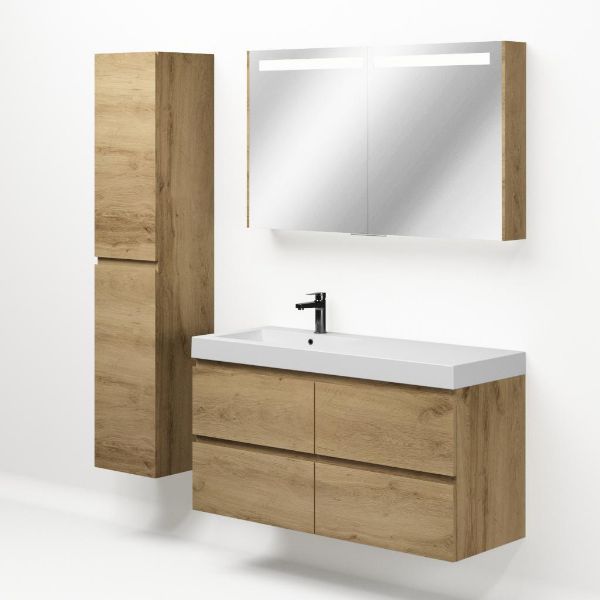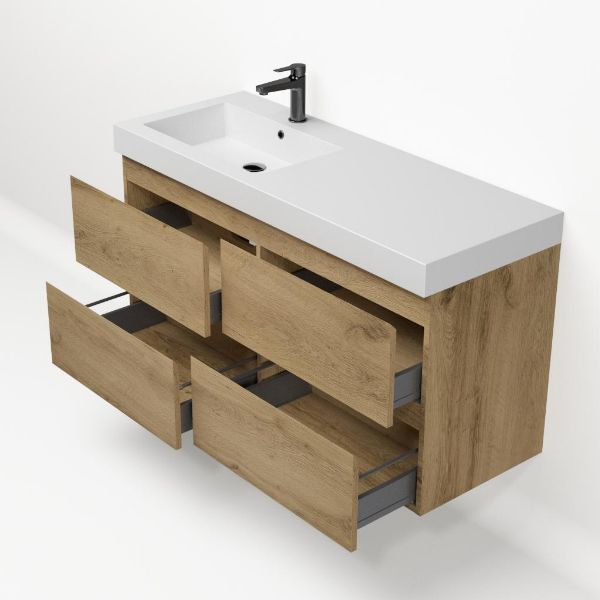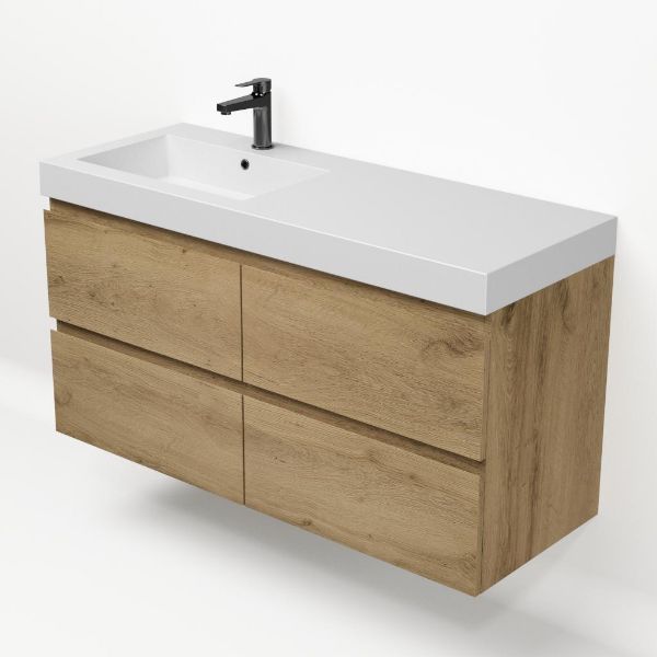 | Bellanti Gisella/Esta-q badmeubel 120x46 4 softclose laden warm eiken greeploos quartz wastafel mat wit links met 1 kraangat |