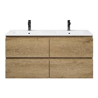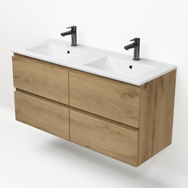 | Bellanti Gisella/Faro badmeubel 120x46 4 softclose laden warm eiken greeploos keramische wastafel dubbel wit met 2 kraangaten |