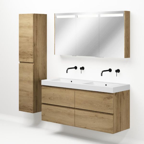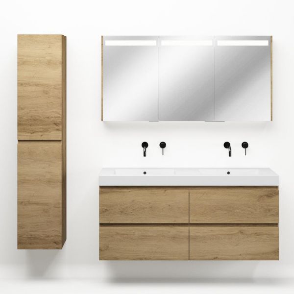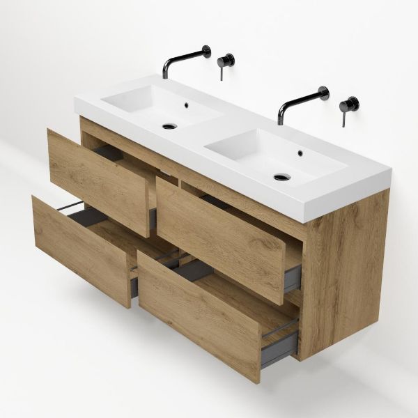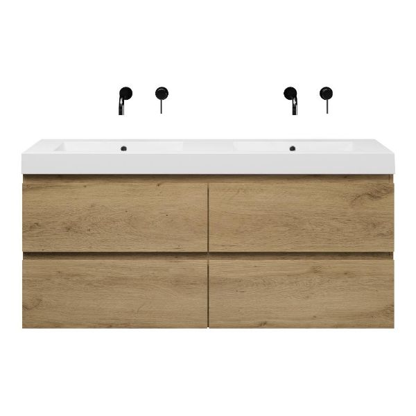 | | Bellanti Gisella/Esta badmeubel 140x46 4 softclose laden warm eiken greeploos polystone wastafel dubbel wit zonder kraangaten |