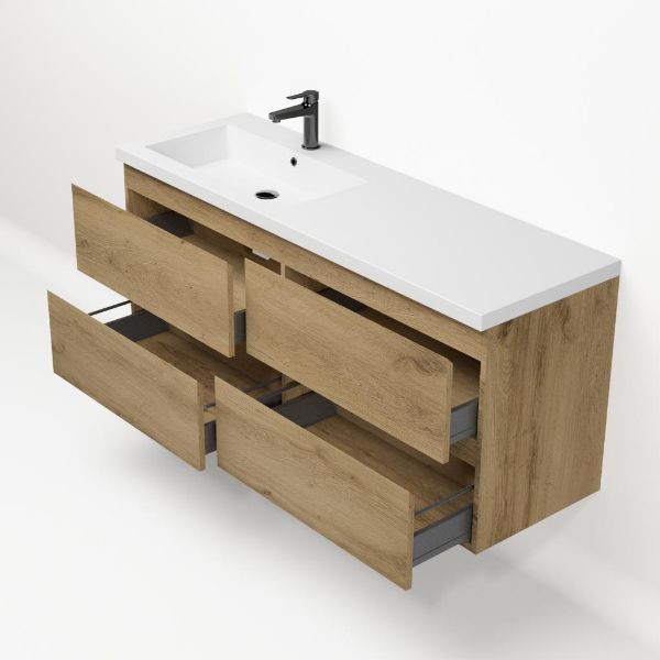 | | Bellanti Gisella/Esta badmeubel 140x46 4 softclose laden warm eiken greeploos polystone wastafel wit met 1 kraangat |