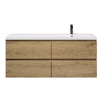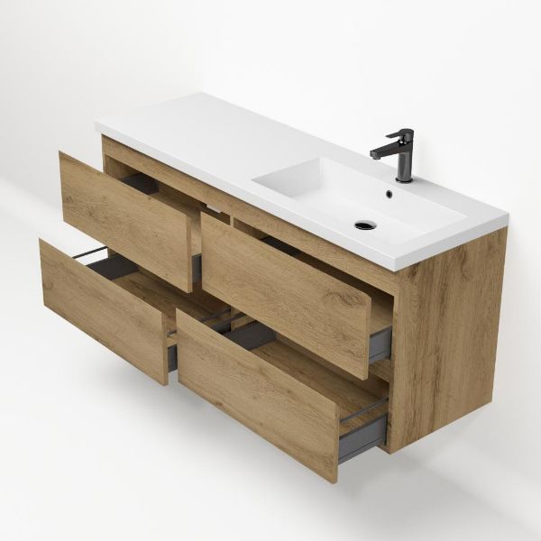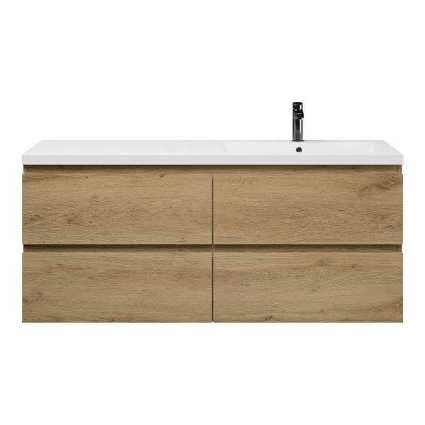 | | Bellanti Gisella/Esta badmeubel 140x46 4 softclose laden warm eiken greeploos polystone wastafel wit met 1 kraangat |