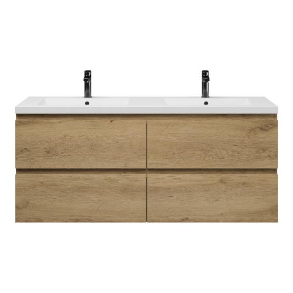 Bellanti Gisella/Esta-Q badmeubel 140x46 4 softclose laden warm eiken greeploos polystone wastafel dubbel mat wit met 2 kraangaten