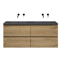 | | Bellanti Gisella/Esta-Q badmeubel 140x46 4 softclose laden warm eiken greeploos quartz wastafel dubbel mat grijs zonder kraangaten |