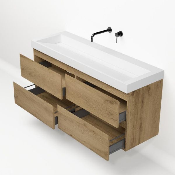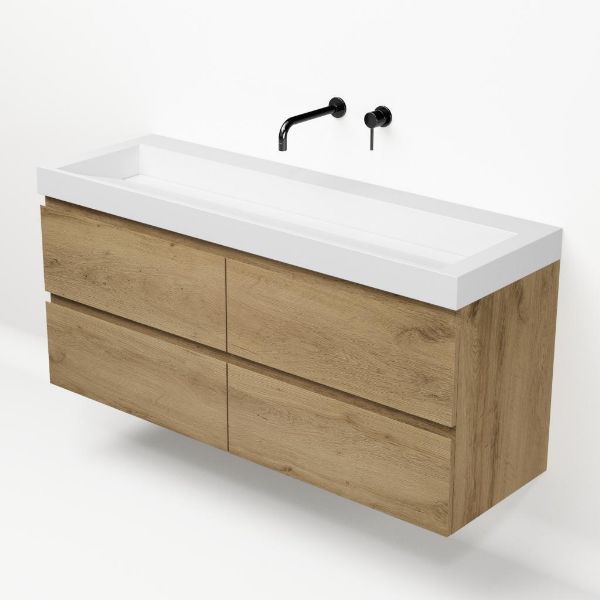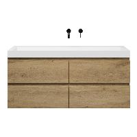 | | Bellanti Gisella/Renzo badmeubel 140x46 4 softclose laden warm eiken greeploos polystone wastafel wit zonder kraangaten |