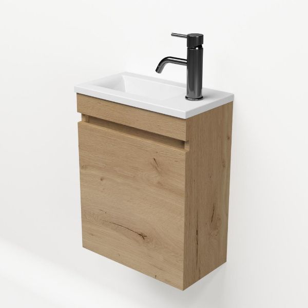 | | Bellanti Bona/Rosanna fonteinmeubel 40x22cm natuur eiken met polystone wastafel met kraangat links/rechts |