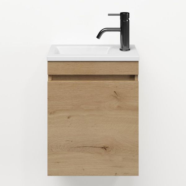 | Bellanti Bona/Rosanna fonteinmeubel 40x22cm natuur eiken met polystone wastafel met kraangat links/rechts |