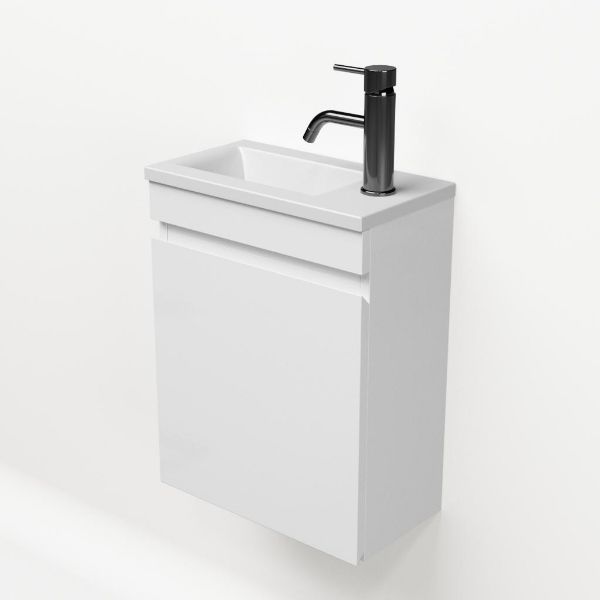 | Bellanti Bona/Rosanna fonteinmeubel 40x22cm hoogglans wit met polystone wastafel wit met kraangat links/rechts |