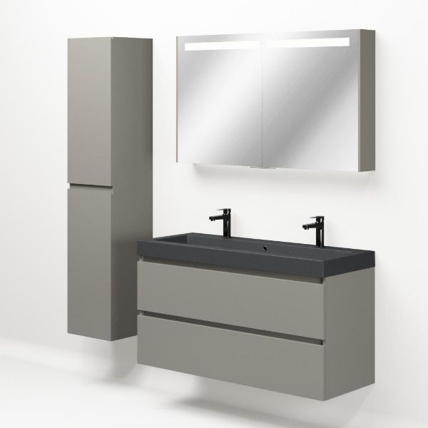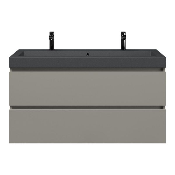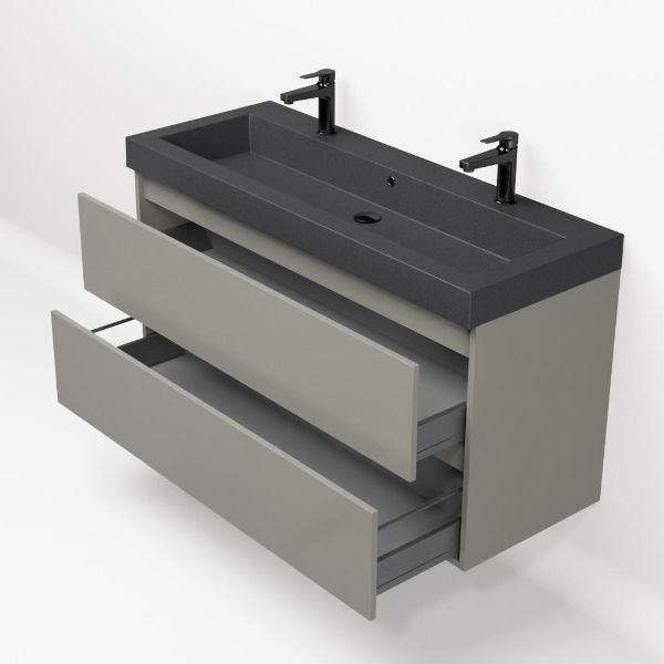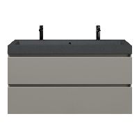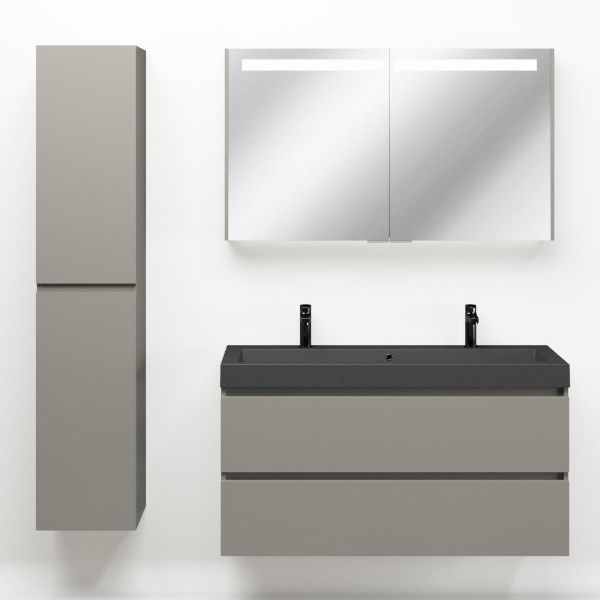 Bellanti Fiore/Esta-Q badmeubel 120x46 2 softclose laden taupe greeploos quartz wastafel mat grijs met 2 kraangaten