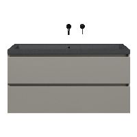 | | Bellanti Fiore/Esta-Q badmeubel 120x46 2 softclose laden taupe greeploos quartz wastafel mat grijs zonder kraangaten |