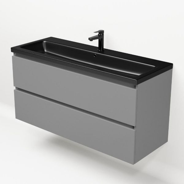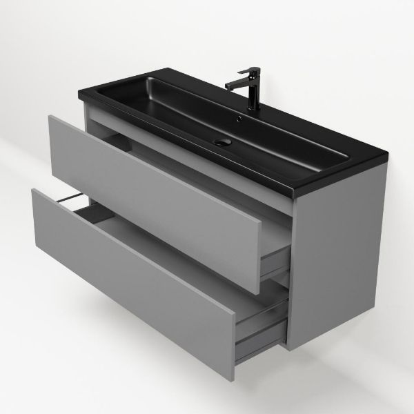 | Bellanti Fiore /Amelia badmeubel 120x46 2 softclose laden mat licht grijs keramische wastafel zwart mat met 1 kraangat |