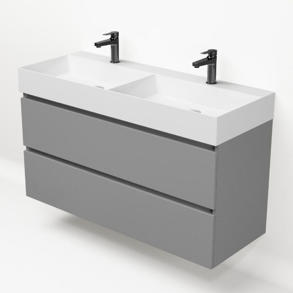 | Bellanti Fiore /Azzurra badmeubel 120x46 2 softclose laden mat licht grijs keramische wastafel dubbel wit glans met 2 kraangaten |