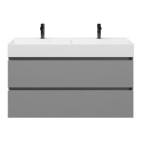 | | Bellanti Fiore /Azzurra badmeubel 120x46 2 softclose laden mat licht grijs keramische wastafel dubbel wit glans met 2 kraangaten |