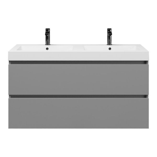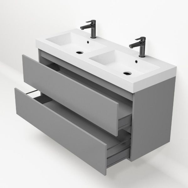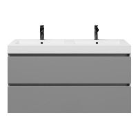 | Bellanti Fiore /Esta badmeubel 120x46 2 softclose laden mat licht grijs polystone wastafel dubbel wit met 2 kraangaten |