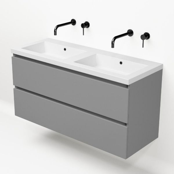 | Bellanti Fiore /Esta badmeubel 120x46 2 softclose laden mat licht grijs polystone wastafel dubbel wit zonder kraangaten |