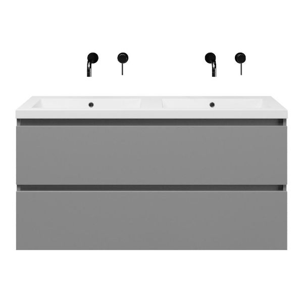 | | Bellanti Fiore /Esta badmeubel 120x46 2 softclose laden mat licht grijs polystone wastafel dubbel wit zonder kraangaten |