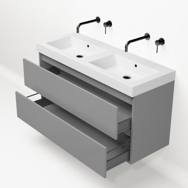 Bellanti Fiore /Esta badmeubel 120x46 2 softclose laden mat licht grijs polystone wastafel dubbel wit zonder kraangaten