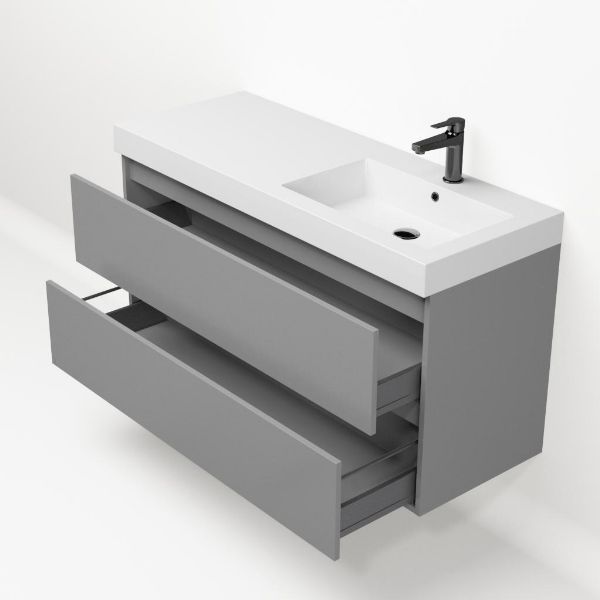 Bellanti Fiore /Esta badmeubel 120x46 2 softclose laden mat licht grijs polystone wastafel wit met 1 kraangat