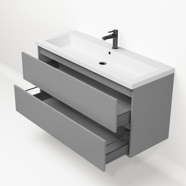 Bellanti Fiore /Esta badmeubel 120x46 2 softclose laden mat licht grijs polystone wastafel wit met 1 kraangat