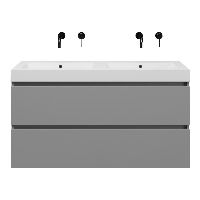 | | Bellanti Fiore /Esta-Q badmeubel 120x46 2 softclose laden mat licht grijs quartz wastafel dubbel mat wit zonder kraangaten |