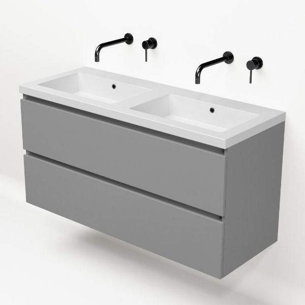| Bellanti Fiore /Esta-Q badmeubel 120x46 2 softclose laden mat licht grijs wastafel dubbel mat wit zonder kraangaten |