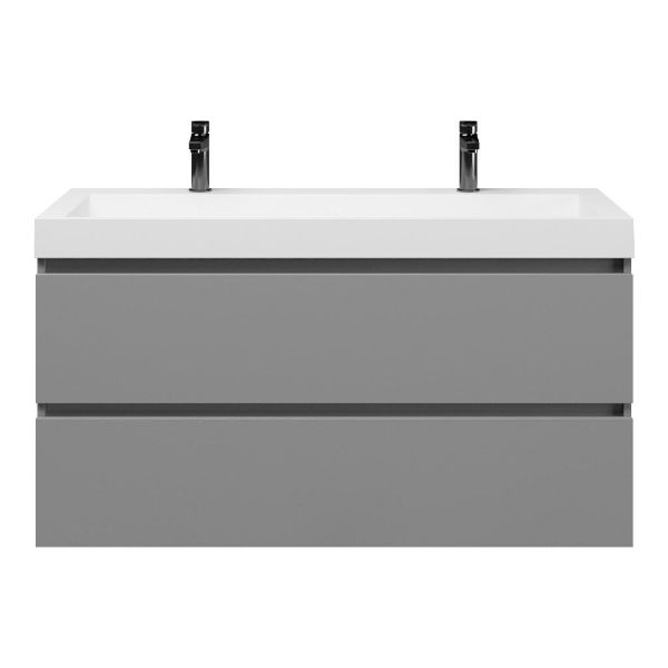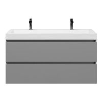 | Bellanti Fiore /Renzo badmeubel 120x46 2 softclose laden mat licht grijs polystone wastafel wit met 2 kraangaten |