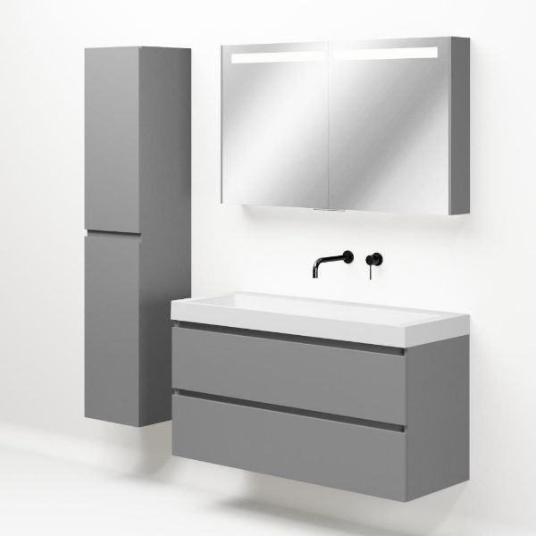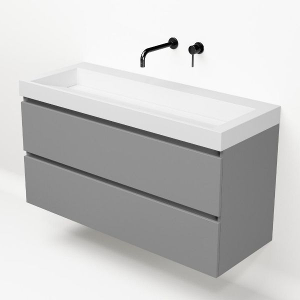 | Bellanti Fiore /Renzo badmeubel 120x46 2 softclose laden mat licht grijs polystone wastafel wit zonder kraangaten |