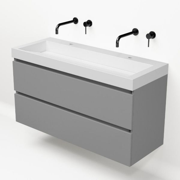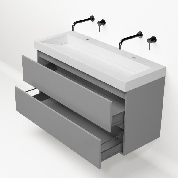 | Bellanti Fiore /Renzo-q badmeubel 120x46 2 softclose laden mat licht grijs wastafel mat wit met 2 kraangaten |
