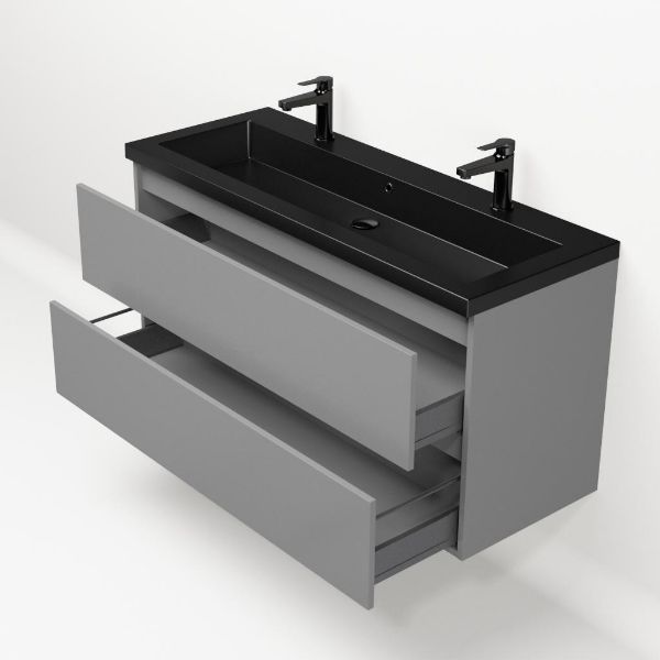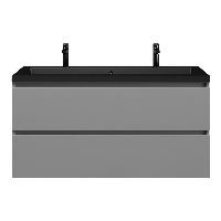 | Bellanti Fiore/Esta badmeubel 120x46 2 softclose laden mat licht grijs polystone wastafel mat zwart met 2 kraangaten |