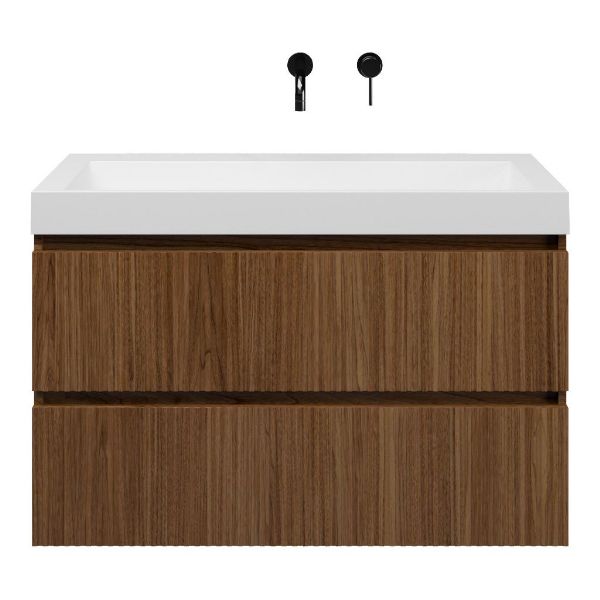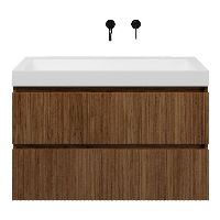| | Bellanti Silvan/Renzo-q badmeubel 100x46 2 softclose laden met ribbel - latjes structuur warm noten greeploos quartz wastafel mat wit zonder kraangaten |