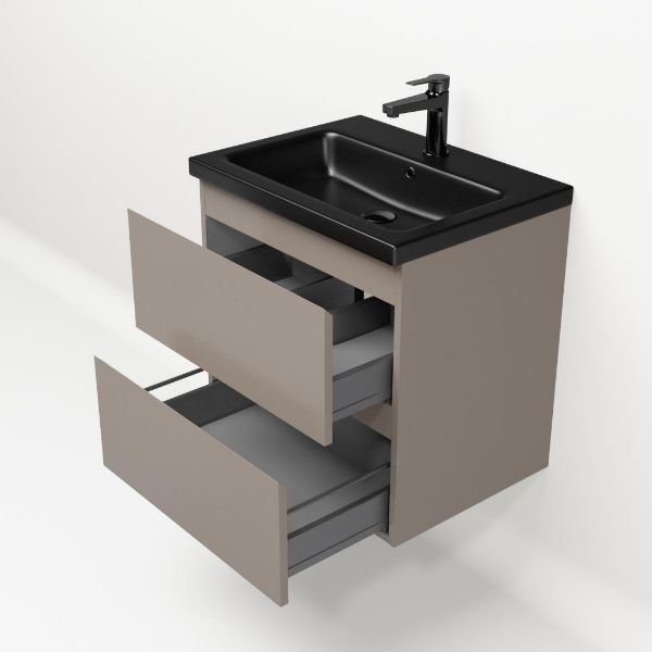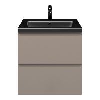 | | Bellanti Gisella/Amelia badmeubel 60x46 2 softclose laden taupe greeploos keramische wastafel zwart mat met 1 kraangat |
