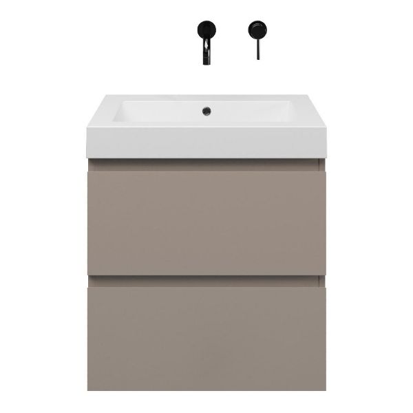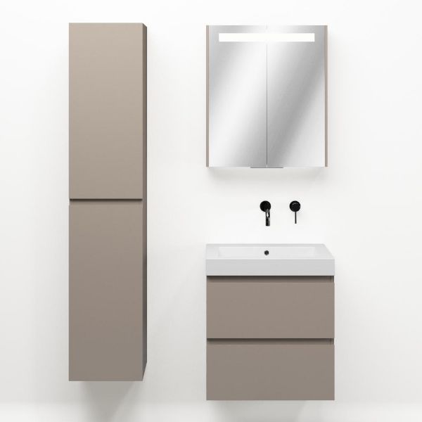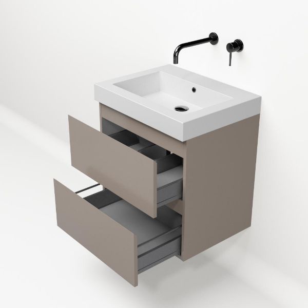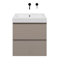 | | Bellanti Gisella/Esta-Q badmeubel 60x46 2 softclose laden taupe greeploos quartz wastafel mat wit zonder kraangaten |