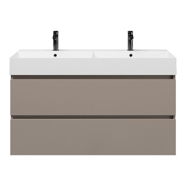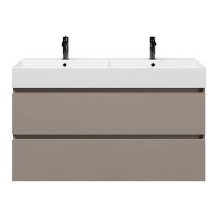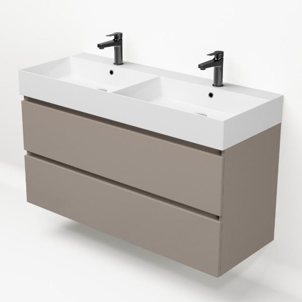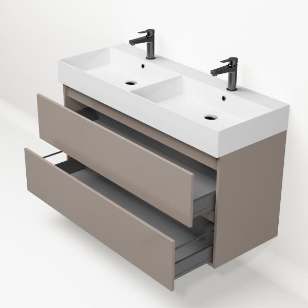 | Bellanti Fiore /Azzurra badmeubel 120x46 2 softclose laden taupe greeploos keramische wastafel dubbel wit glans met 2 kraangaten |
