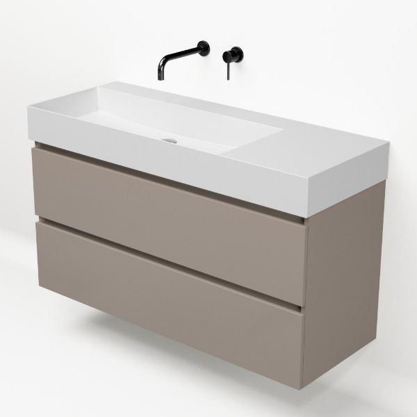 | Bellanti Fiore /Azzurra badmeubel 120x46 2 softclose laden taupe greeploos keramische wastafel links wit mat zonder kraangat |